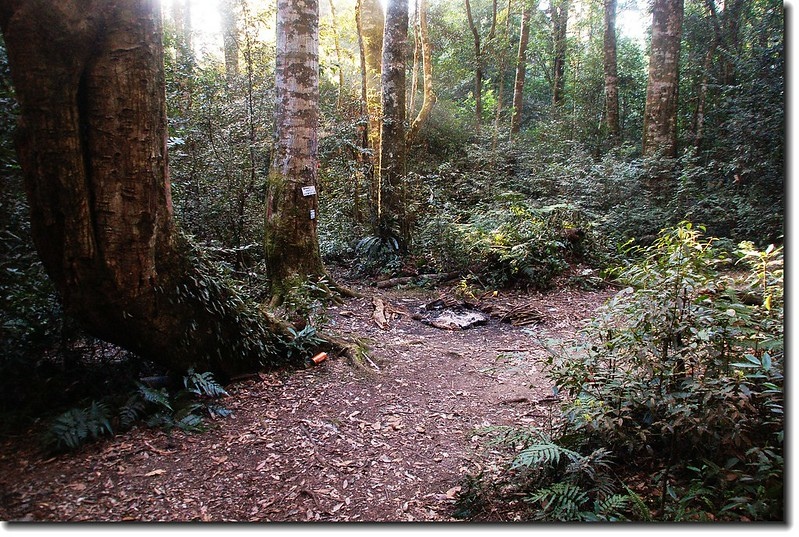 15:54 岔路,兩路皆可抵南東眼山,左線到三叉路右上南東眼、直行往守城大山,此線路條多、較多人走;右線陡上路條稀,較少人走;