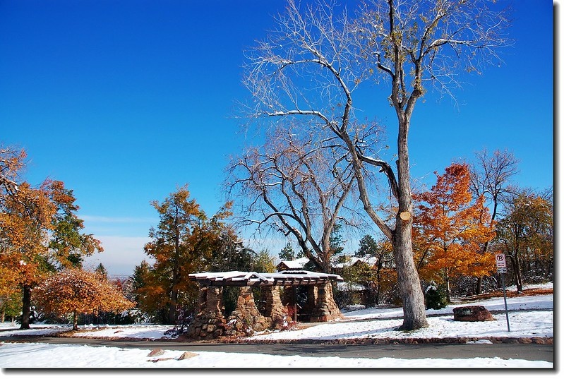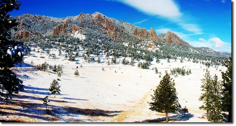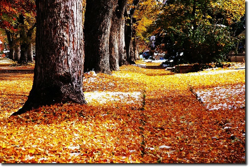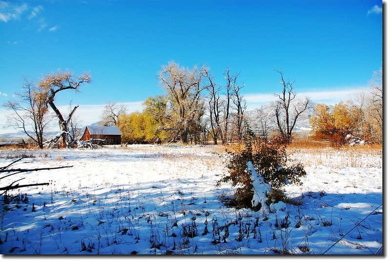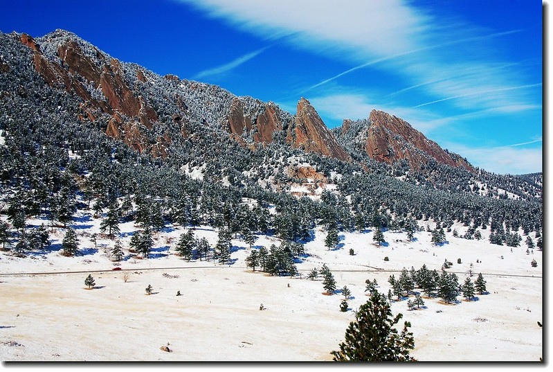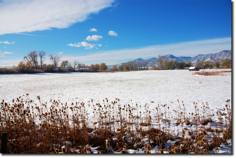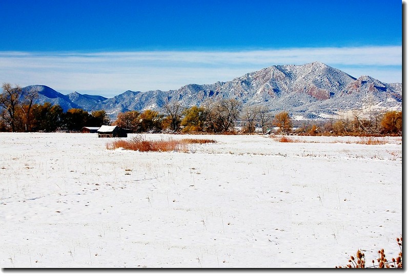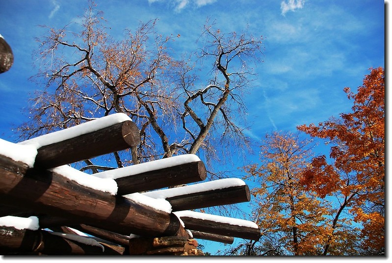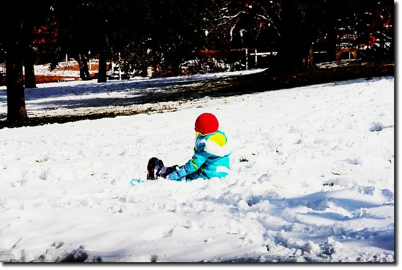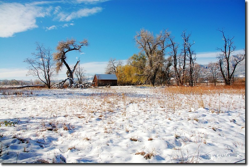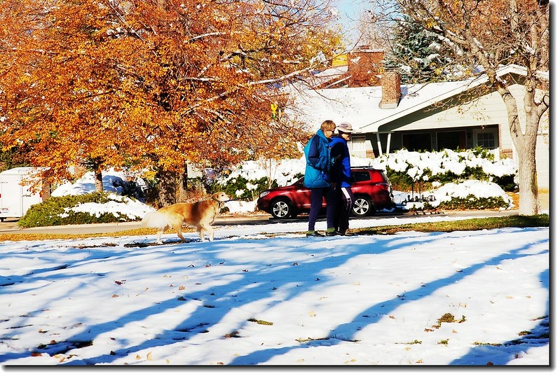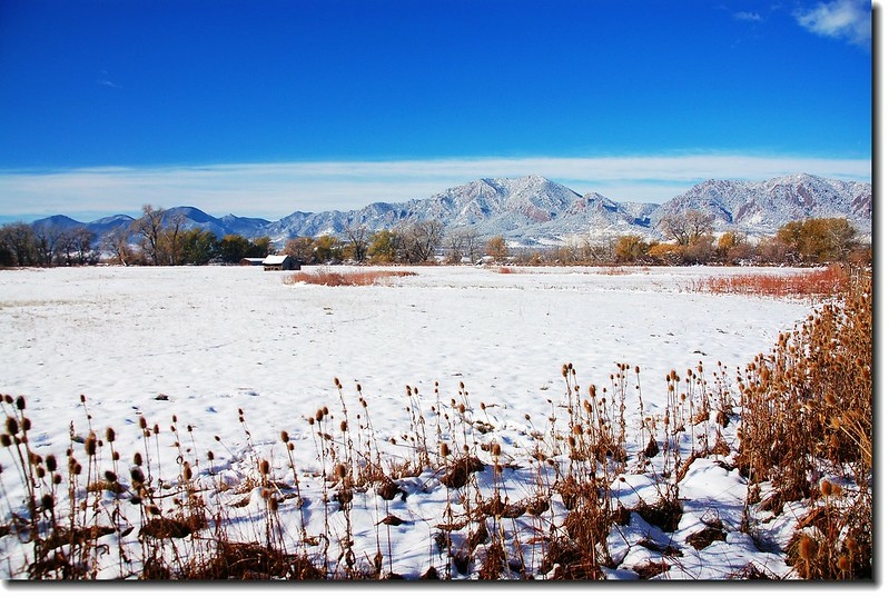 二十四、二十五日晚上各下一場雪後,週六(27)剛好是個大晴天,獨自一人到山城Boulder走走。比起前天剛下雪來訪時的雲蒸霧湧、朦朦朧朧,今天則是晴空萬里、湛湛藍天;大地舖上一層靄靄白雪,掉光葉子的禿樹傲佇雪地,天氣好,蟄伏幾天的人群也活躍了,湖邊、雪地,盡是賞雪、玩雪的人群。冬,已悄悄來到人間!