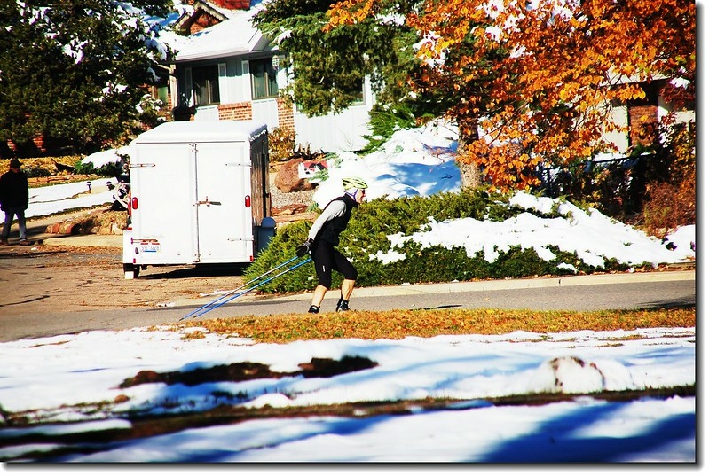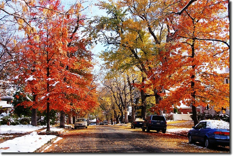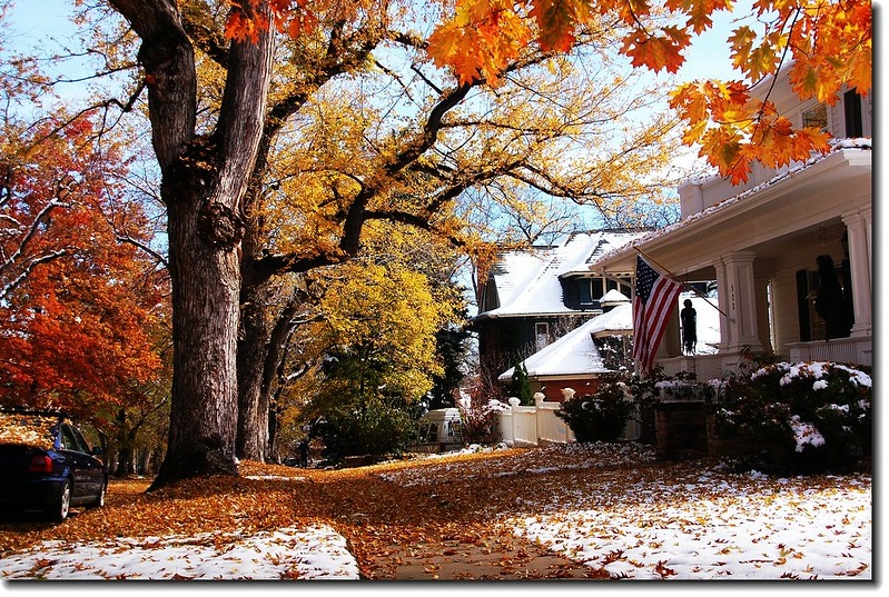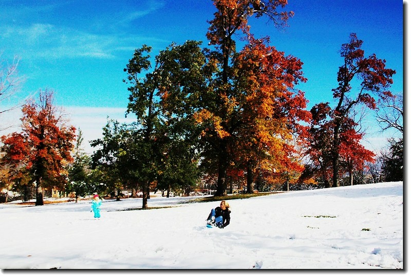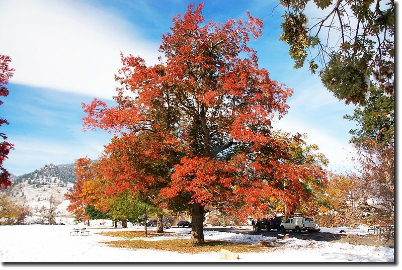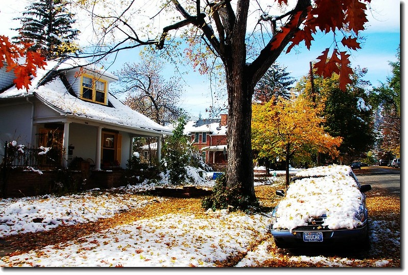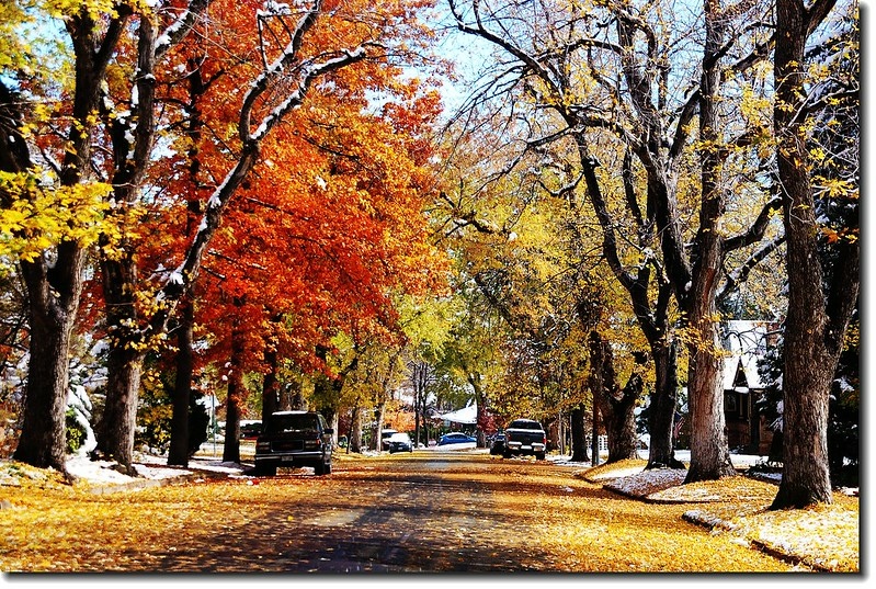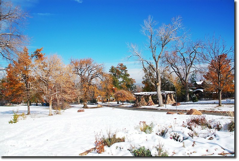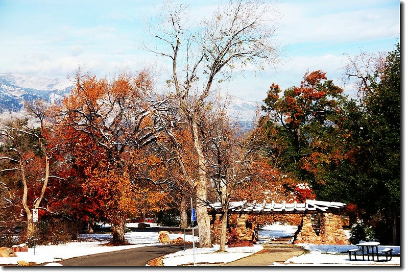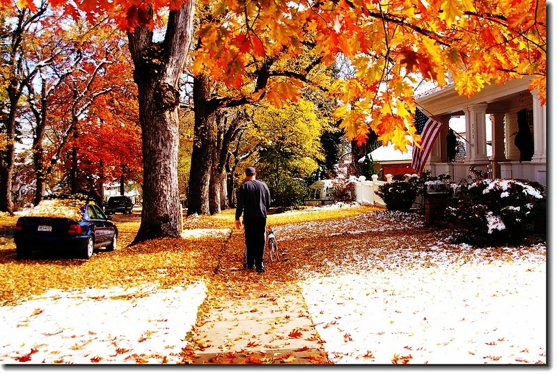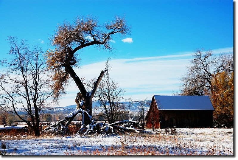二十四、二十五日晚上各下一場雪後,週六(27)剛好是個大晴天,獨自一人到山城Boulder走走。比起前天剛下雪來訪時的雲蒸霧湧、朦朦朧朧,今天則是晴空萬里、湛湛藍天;大地舖上一層靄靄白雪,掉光葉子的禿樹傲佇雪地,天氣好,蟄伏幾天的人群也活躍了,湖邊、雪地,盡是賞雪、玩雪的人群。冬,已悄悄來到人間!