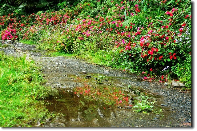 08:48 停車處出發(桶后越嶺0k指標),天氣不是很好,希望不要遇上下雨。桶后越嶺道很美,沿著桶后溪而行,野花處處。