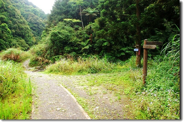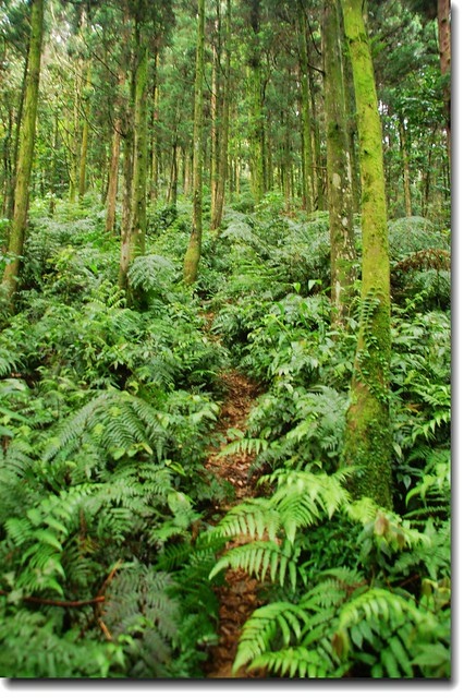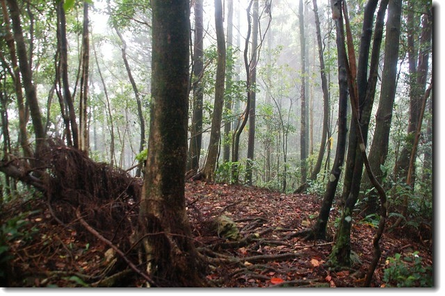 取右上從大礁溪山的登山口進入,一開始馬上就是一大段的陡上路段,走來氣喘吁吁、汗流浹背!也許是近日多雨,地面濕滑小心慢行。
