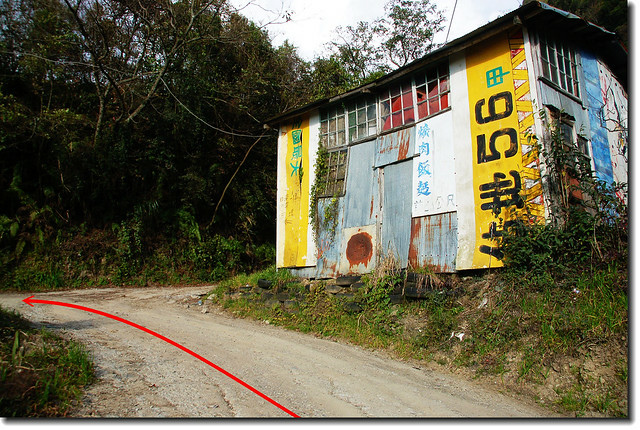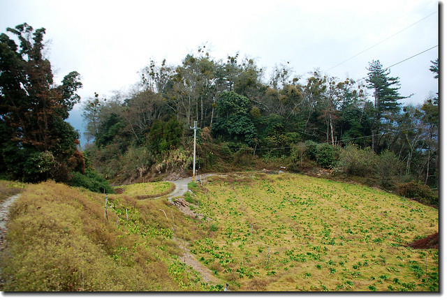 7.6K菜園叉路,產道最高點,電桿為“武士分47”,右上方為菜園工寮;取直行下坡,非四傳車最好停此,否則回程易打滑上坡不易。