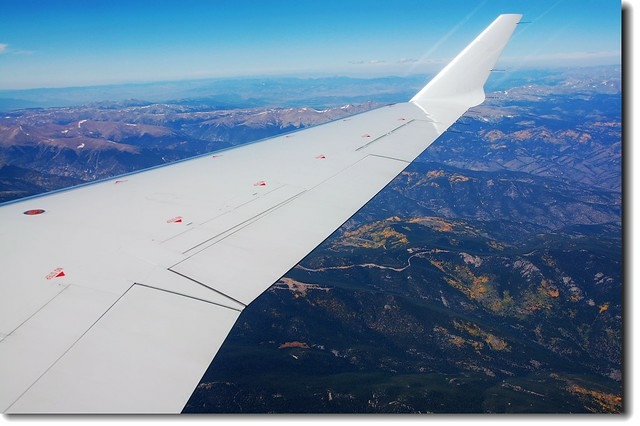 返台途中飛越洛磯山脈,今年雪季來得晚,在科羅拉多上空無法看到藹藹白雪,倒是白楊木(Aspen)正值葉子轉變為金黃,整個洛磯山脈像是塗上一層金箔;