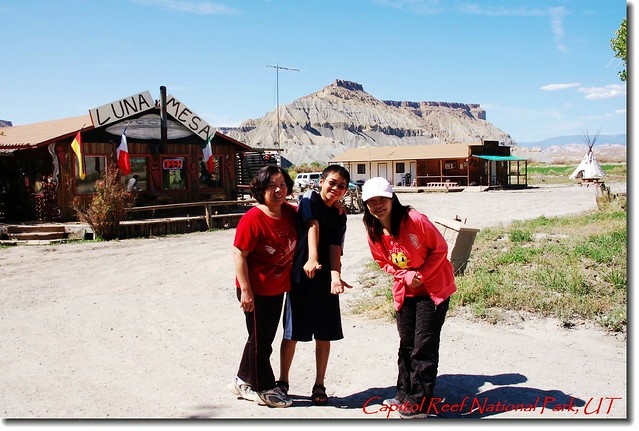 11:00 抵達一個叫做Caineville的小地方,這裡里程標示是UT-24公路101哩處,四周都是惡地形幾乎是寸草不生,路邊有一家叫做Luna Mesa Oasis的旅館,看來沒什麼特色,但此次出來忘了查用餐資訊,不知何處才再有用餐的地方,豆豆又猛喊餓,Brunch(早中餐)就在此解決了!其實還不錯,價錢也不會太離譜。