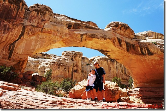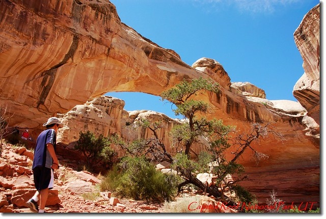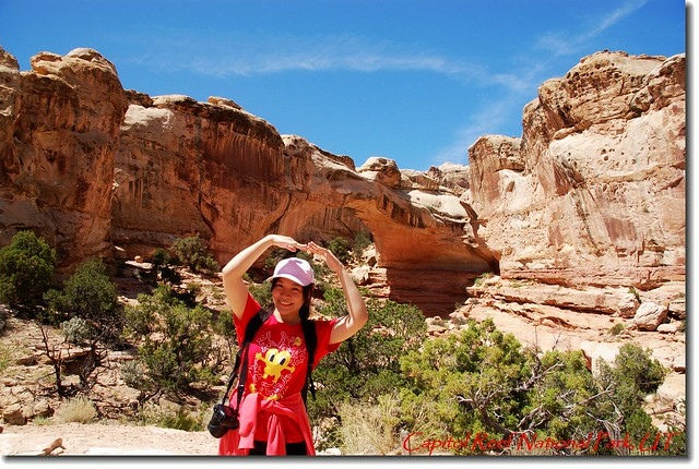 Hickman Bridge是一天然拱橋,距登山口約一哩,爬升約400呎,來回約一個半小時;同一登山口另有一條Rim Overlook Trail,來回約4.5哩,正中午、且限於時間我們沒走。