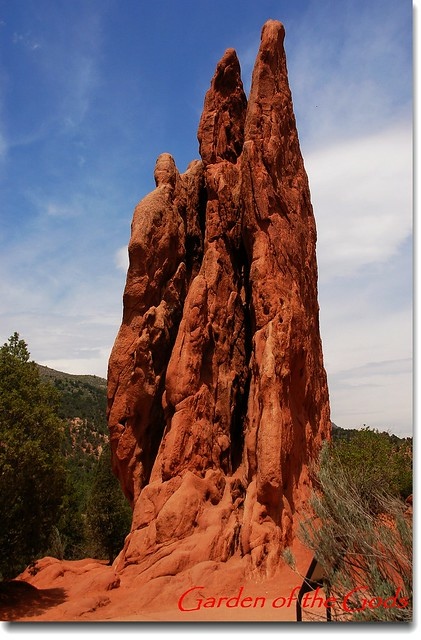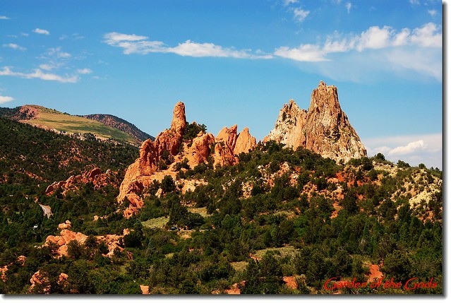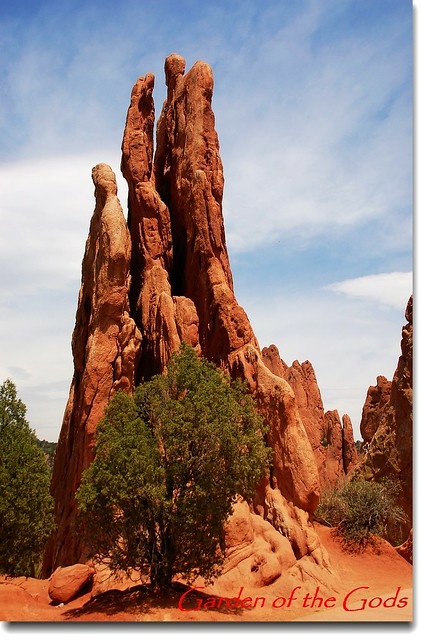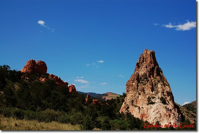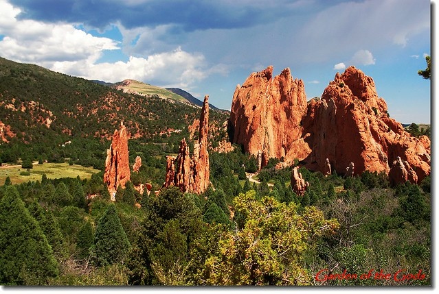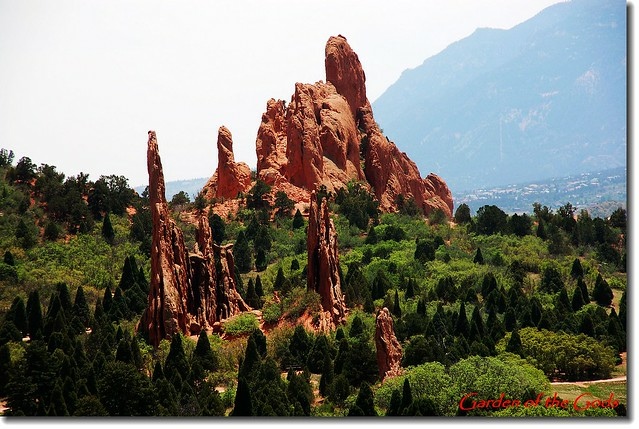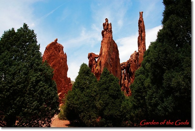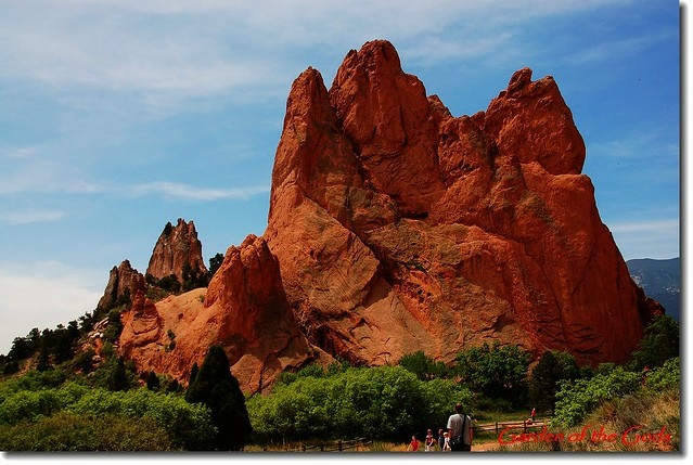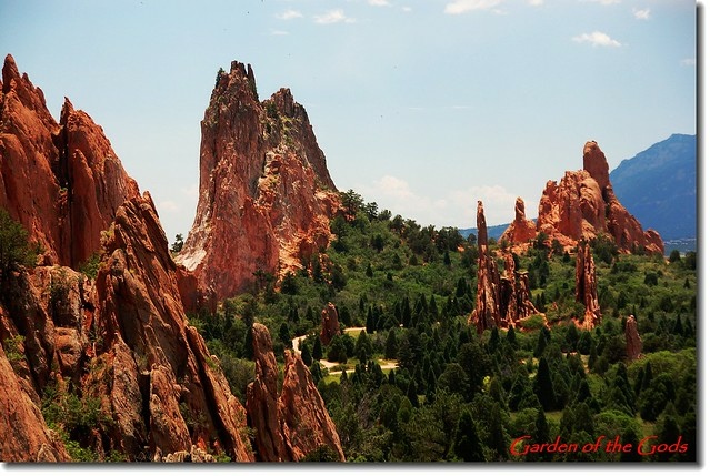 Garden of the Gods 位處丹佛(Denver)南邊約70哩之科羅拉多洲第二大城Colorado Springs(科泉市)西郊約3哩的地方,面積約3300英畝,園内遍佈的紅色沙岩形成於約3億2千萬年前;原本沉積在內陸淺海的含大量鐵質 的砂岩在6千萬年前隨著落磯山脈造山運動而隆起,經過長期的強風暴雨侵蝕形成今日公園內各種形狀的奇岩異石。
