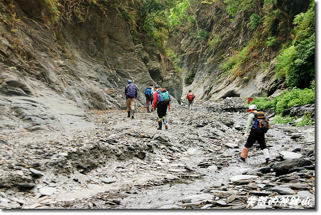 11:25 左切下河谷,此河谷係上一河谷(10:39下切河谷)之上游,河谷上端有一小瀑,在此午餐。