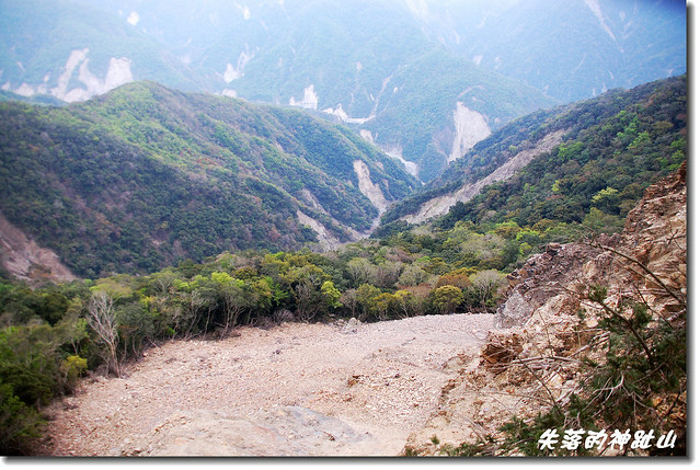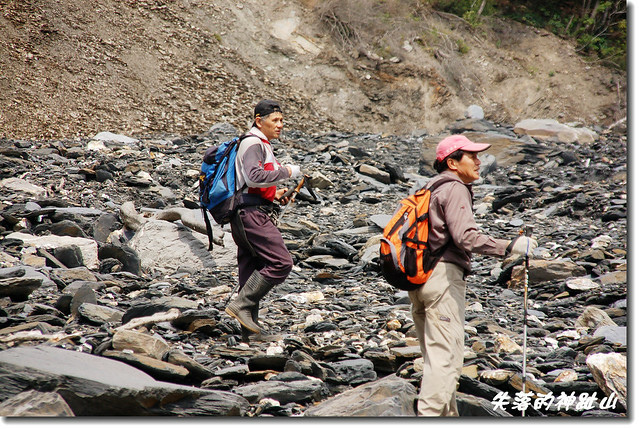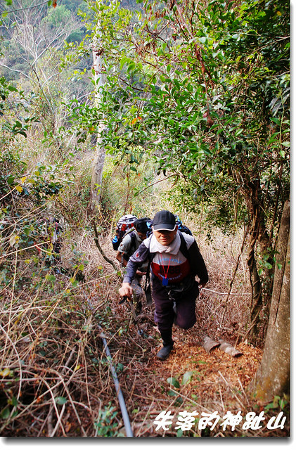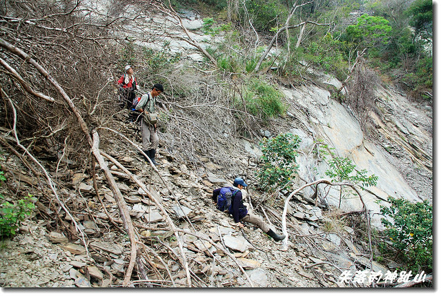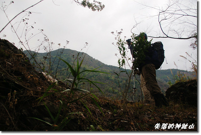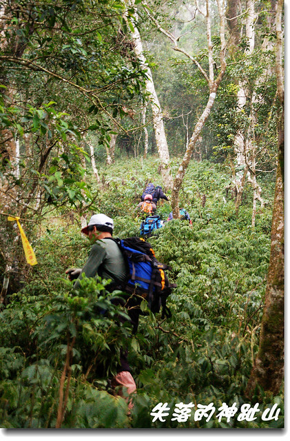 小徑越往上,Kaku兄和阿超越覺不對勁,因為我們似乎走在航跡的左邊,而且越偏越遠,當下決定往東下切河谷。