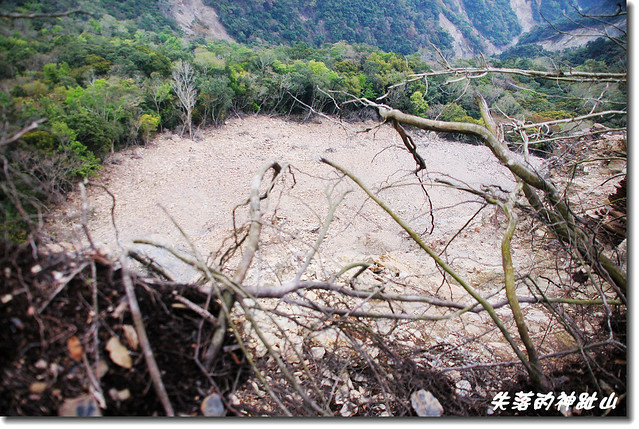“三角點就在那個地方!”大夥兒順著Kaku手指的方向一看,那是個距崩壁約 兩公尺 的懸空處,下面是深達數 十公尺 的崩塌地……,天呀!基石迷們,你們又失去了一顆迷人的基石!