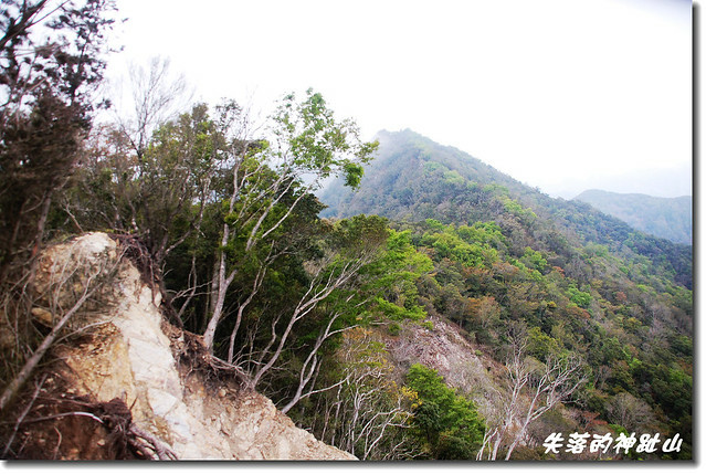 14:10 再望一望那片大崩壁,悵然的離開神趾山頭,心想,沒了三角點,這顆本就冷門的中級山可能就再少有人造訪了,好好休生養息吧!神趾山。