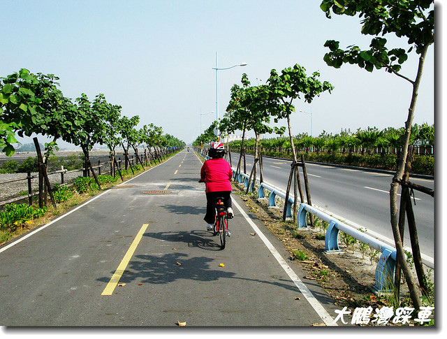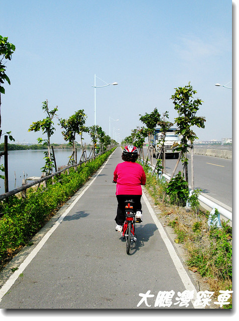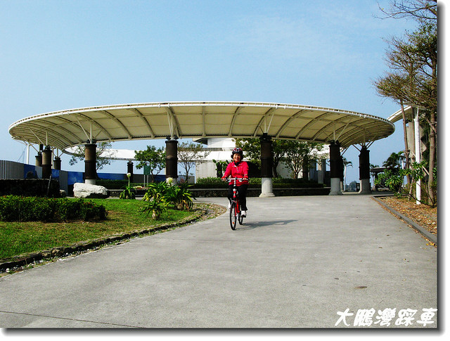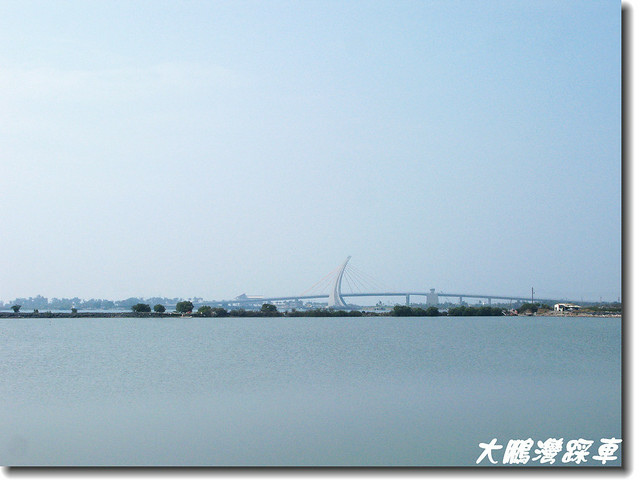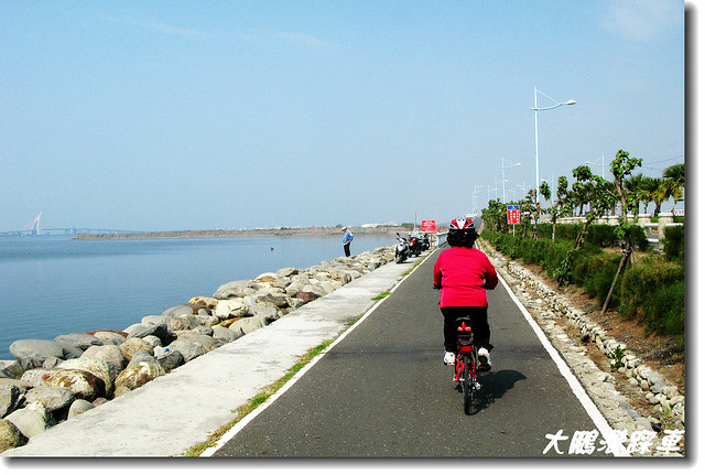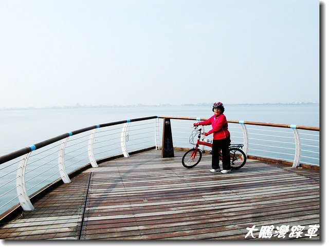 太座最近深受足底筋膜炎之苦,打算改騎單車取代健行,昨天忍痛敗了一輛小摺,今天帶她到大鵬灣試騎;事先未充分了解資訊,不知大鵬灣環灣自行車道因施工而封閉,只好選在未封閉路段繞繞,共騎了12公里,因施工關係沒遇到幾個遊客,騎車者也少的可憐!據報導該跨海大橋將於本月27日完工啟用,屆時將又增加一觀光景點。