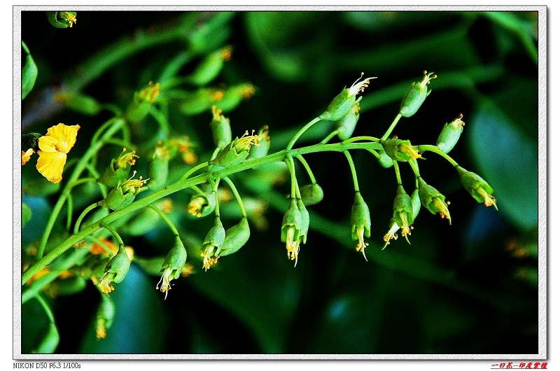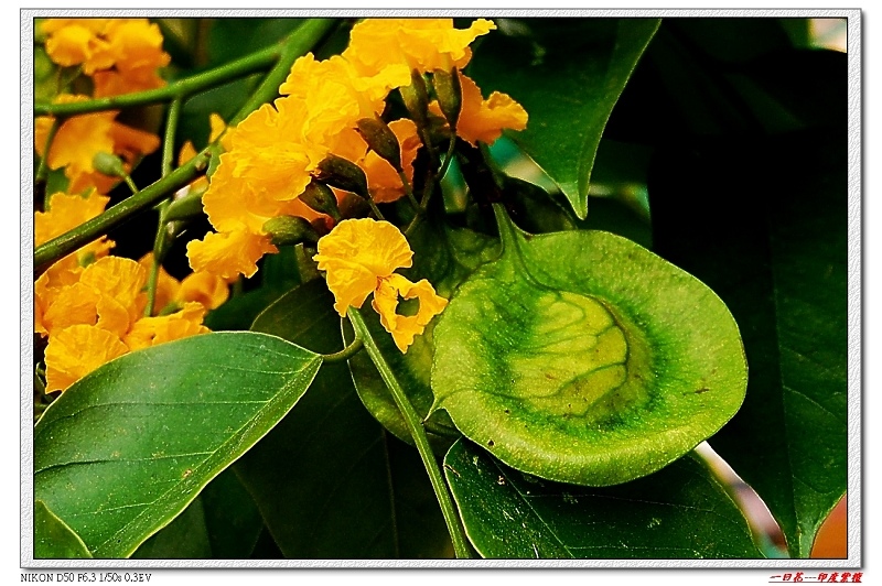 果實:萊果扁圓形,大小約 4~ 5 公分,中央肥厚內藏種子 1 粒,似荷包蛋,而豆莢的外緣有一圈平展的翅,寬約 1 公分,可幫助果實的散布。
