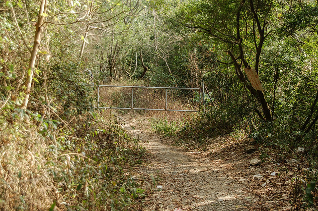 08:56 鐵閘門,樹上訂一木板告示牌,上書“白鷺段(自治)獵區,禁止外人進入,謝謝合作!白鷺社敬告。”看是當地人自設,並無公權力介入。古道平坦緩上好走。