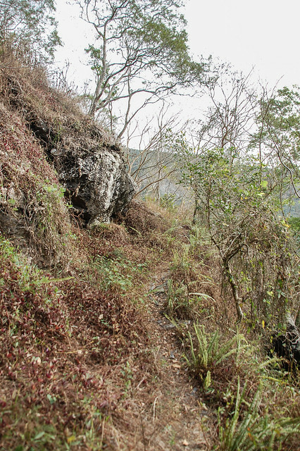 古道路徑清晰易走,走不了多遠即有人用兩根木頭擋住古道作禁入狀,猜是當地住民所為,應該和登山口的禁止外人進入告示有關,因為從這開始即進入原住民狩獵區了 、一般登山社群也都止於此就沒在往前推進。以前這條古道是古樓社與白鷺社姻親互往聯絡道路,也是兩社聯合對抗強敵力里社的防禦通道,日據時期日警為了控制古樓社住民循著此路牽引電力、這也是原住民深山部落唯一有電力的部落。