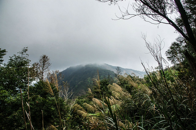 行約 一公里 左右的古道,眼見北方烏雲密佈,大武藏山頭也被一大片濃霧壟罩著,三人乃回頭,大武藏就待蒐集更多資訊後再來攀登了。