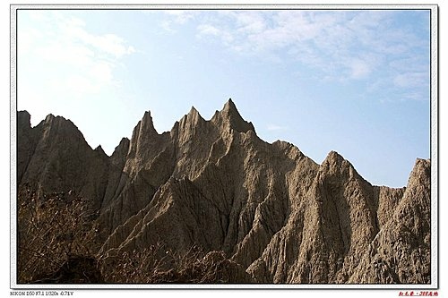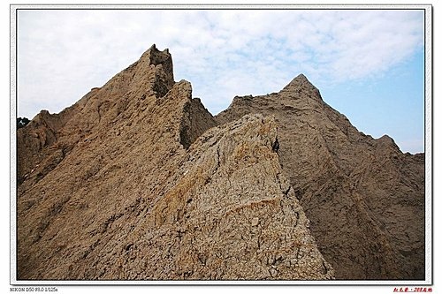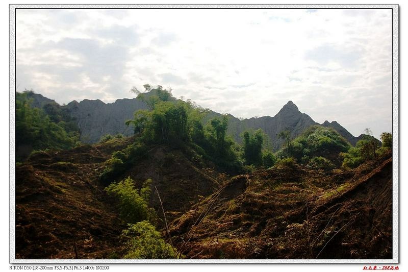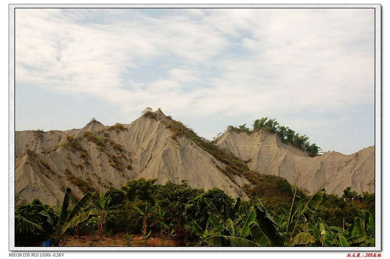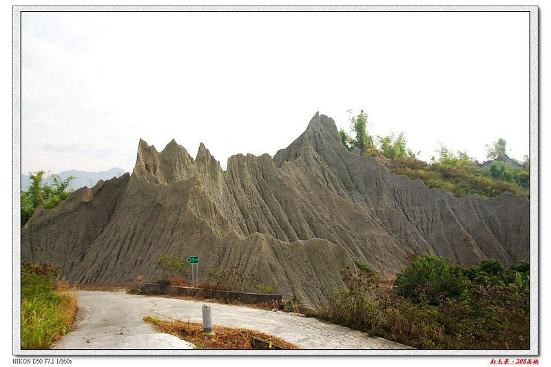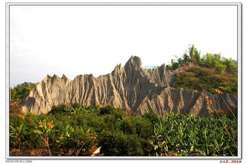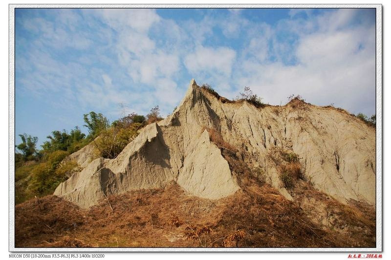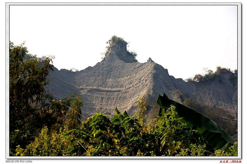 09:52 玉女峰—由大面積的硬岩塊所造成的差異侵蝕地形,在惡地形中突起的山岩,山形秀麗猶如玉女之美妙曲線,因而命名。玉女峰旁有間百年的土角厝,屋後有棵鳳凰木,每年夏天盛開時,是最美麗的時候。