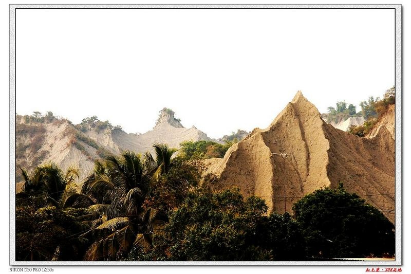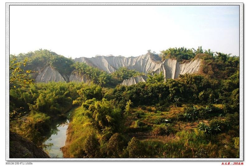 台南縣左鎮鄉的草山月世界(小時候我們稱此地為紅毛寮),是由砂岩與頁岩所構成的青灰岩地形,與高雄縣內門、田寮、燕巢鄉的泥岩惡地連成一片,稱為白堊土地形。因地質鬆軟,加上草山溪、岡林溪等河流切割地表,造成山岩嶙岣綿延,到處懸崖峭壁,山脊也光禿成鋸齒狀。由於白堊土含高鹼性,使得草木難生,荒地中只有耐旱的剌竹生長。由岡林村往草山月世界的路上,沿途所見盡是稜角分明的特殊地形,以及青翠的剌竹景觀;隨著四季與晨昏的變化,草山月世界也展現出不同的風貌:氣候清朗的黎明,站在海拔308m 的至高點上,可欣賞日出和多層次的雲霧變化,冬季時,剌竹漸漸轉為枯黃,翌年春天又變為紅色,每年3~4月,便是觀賞剌竹變色的最佳時機。