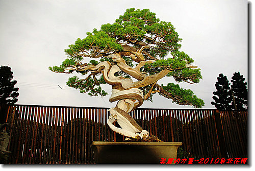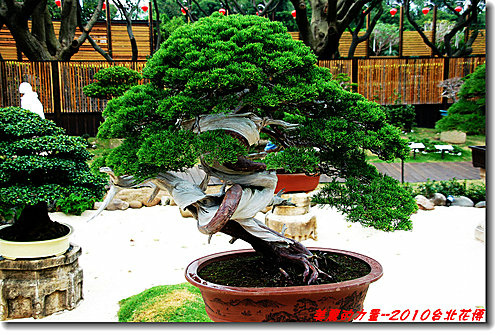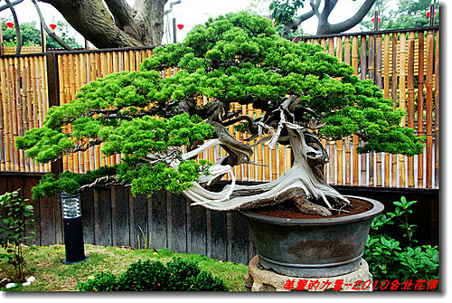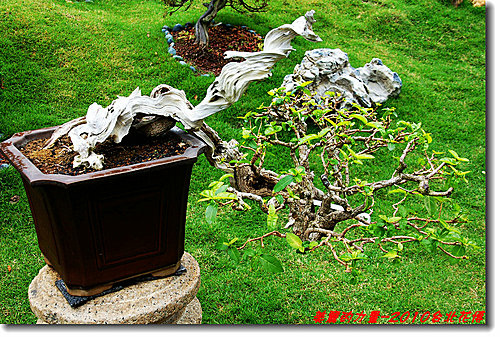 以「養生氧生」為主題,主要展示百年樹齡的特殊盆景,以及各時節的藥用、入菜花草植物。這是個價值不斐的展館,因為裡面放著參加競賽得獎無數的盆景。